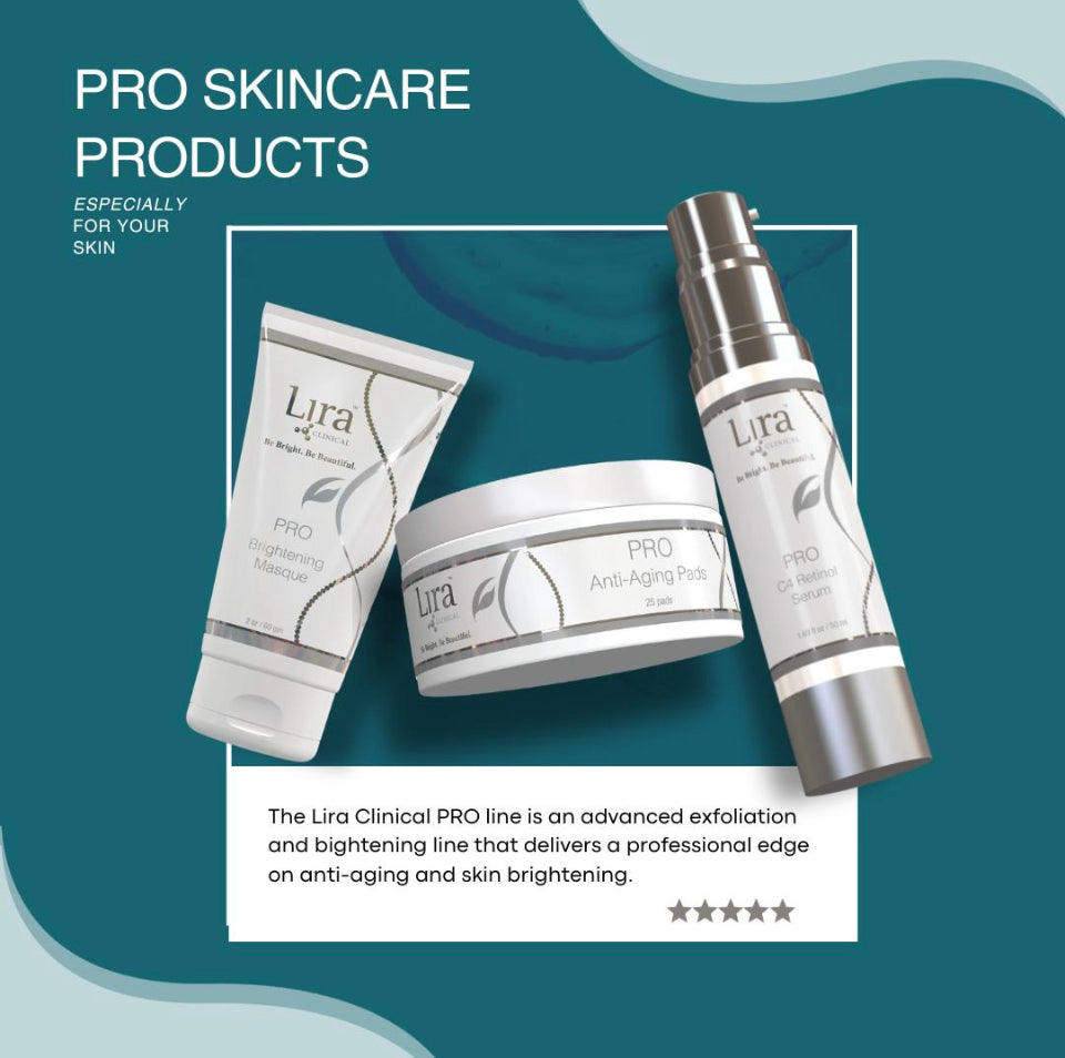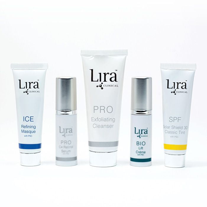Lira Clinical's Anti-Aging/Firming home care kit includes the latest ingredient technology combined with proven clinical results for the ultimate in age prevention. This advanced exfoliation and lightening line delivers the professional edge on anti-aging and skin brightening. PRO products are formulated to target all skin conditions with the next generation of designer peptides, refining retinol, brightening hexylresorcinol, and skin tightening poly-hydroxy acids. This line is essential for effective cellular turnover and skin renewal.