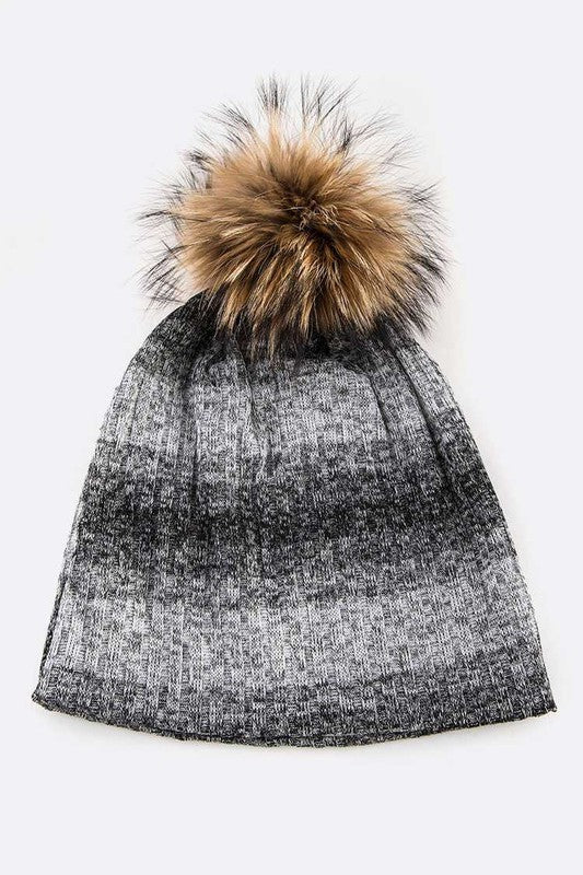 Faux Fur Pom Cotton Blend Slouchy Beanie
