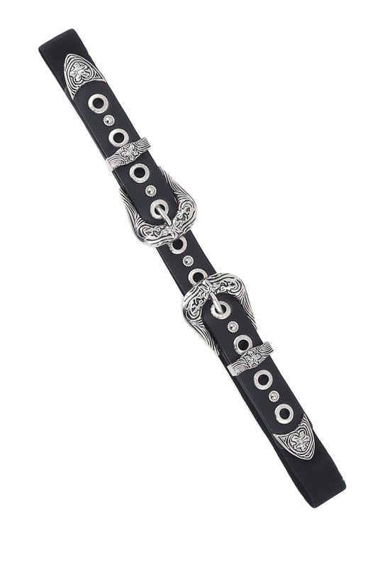Filigree Western Style Buckle Elastic Belt