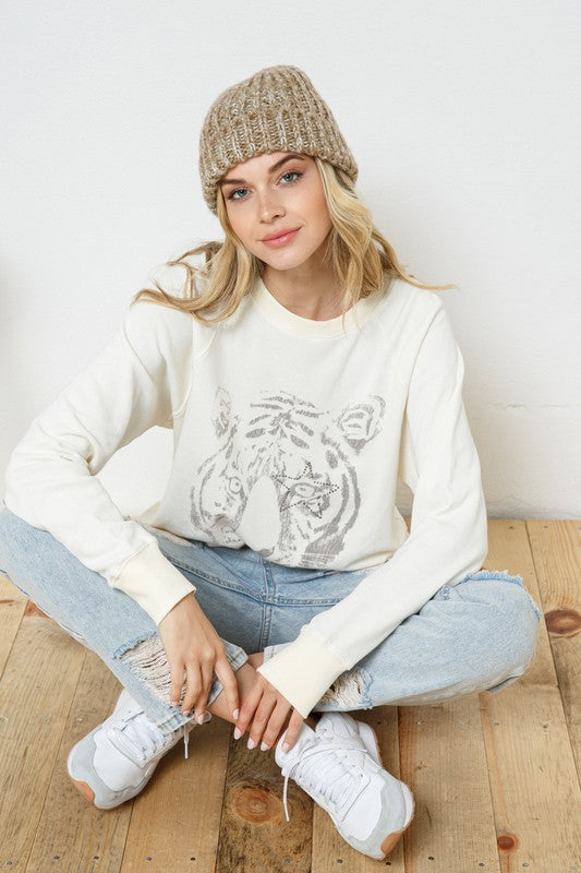 French Terry Tiger Studded Star Graphic Sweatshirt