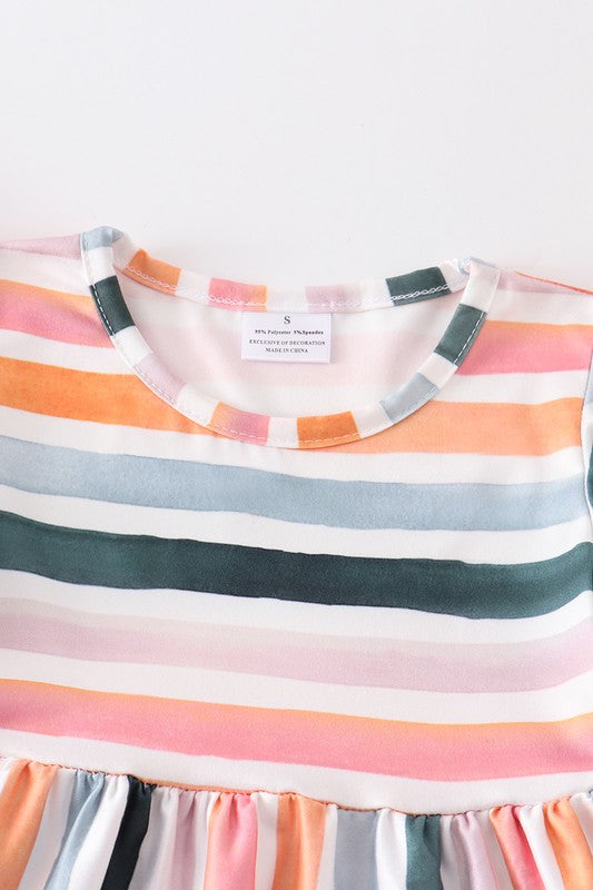 Girl's Multicolored Stripe Print Mommy and Me Dress