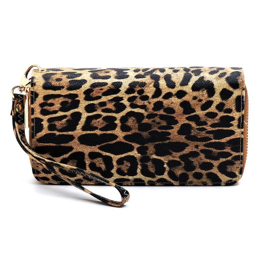 Leopard Double Zip Around Wallet Wristlet