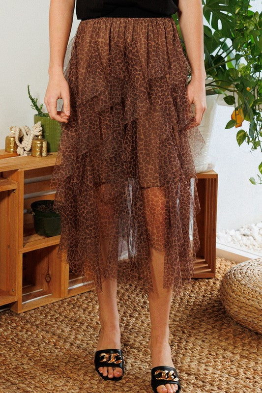 Leopard Mesh Tulle Midi Skirt