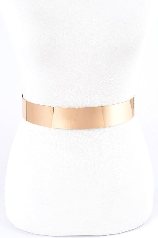Metallic Faux Leather Elastic Fashion Wide Belt