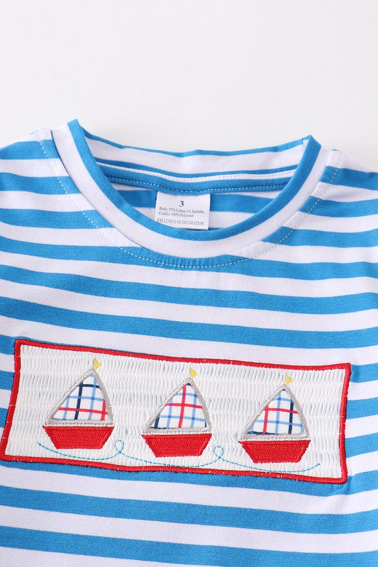 Boy's Blue Stripe Sailing Boat Two Piece Set