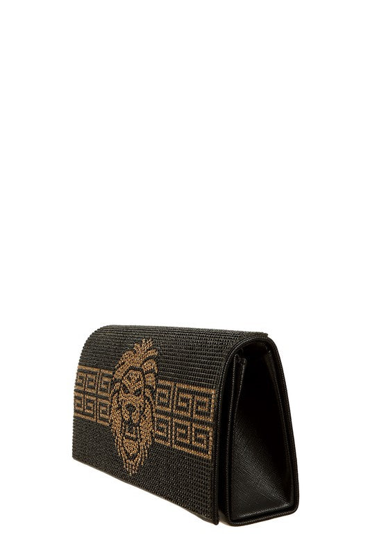 Lion Greek Rhinestone Clutch Crossbody Handbag