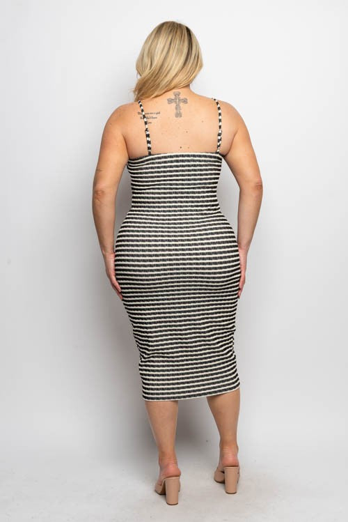 Plus Size Stripe Twist Sweetheart Neck Bodycon Midi Dress