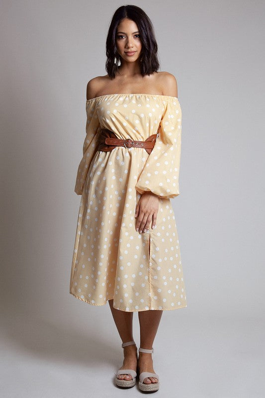 Women's Yellow Polka Dot Off the Shoulder Midi Dress