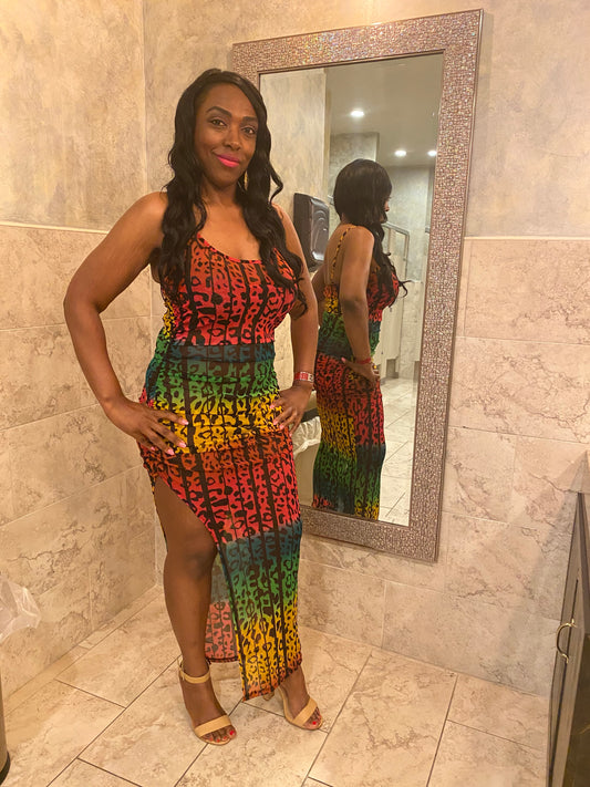 Women's Rouched Cami Animal Print Multicolor Maxi Dress