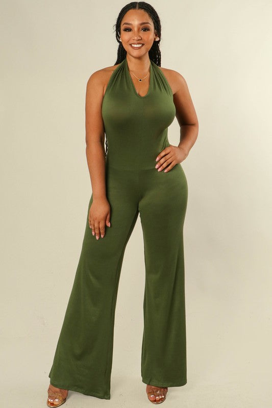 Women's Solid Color Halter Neck Wide Leg Jumpsuit