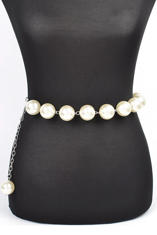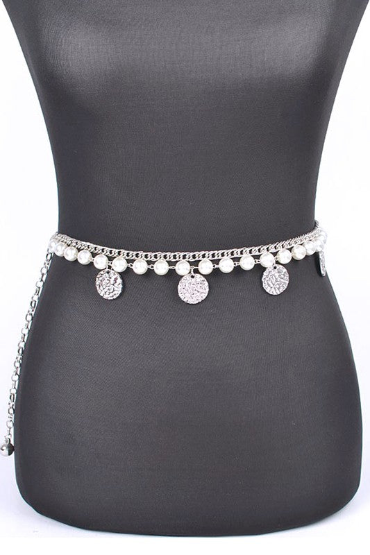 Plus Size Fringe Disk Pearl Accent Chain Belt