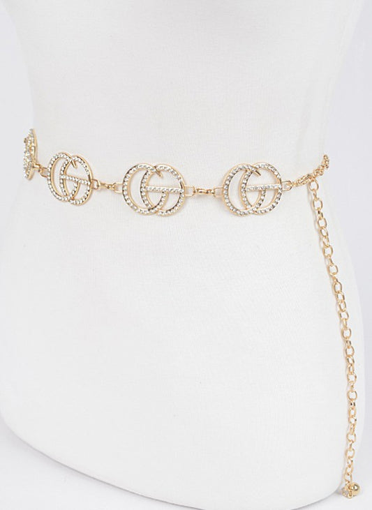 Multi Rhinestone Metal CG Chain Belt