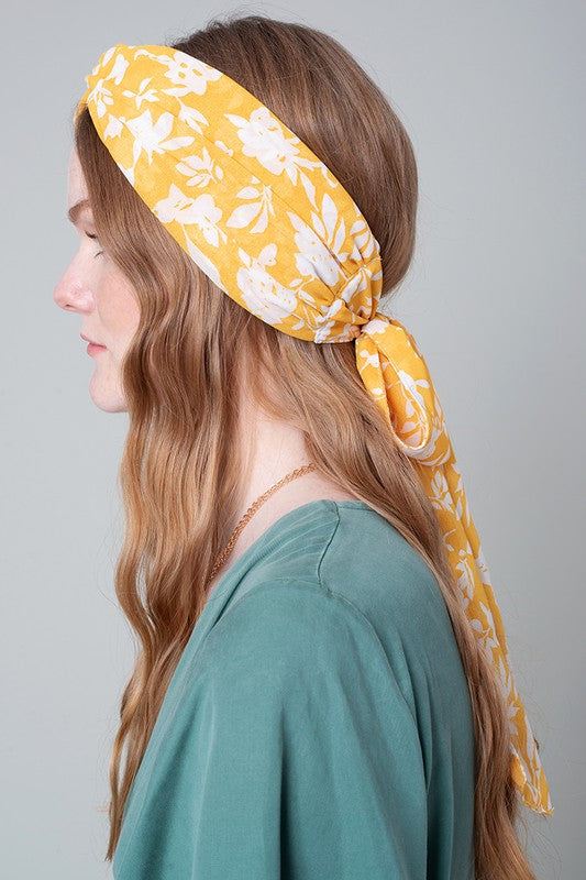 Yellow Floral Print Twisted Headband