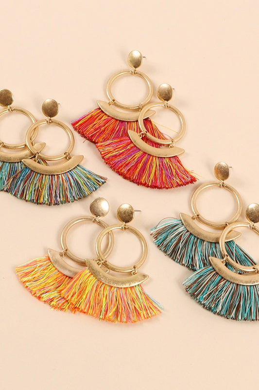 Round Metal Multi Tassels Dangling Earrings
