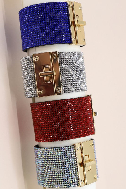 Rhinestone Embellished Lock Cuff Bracelet