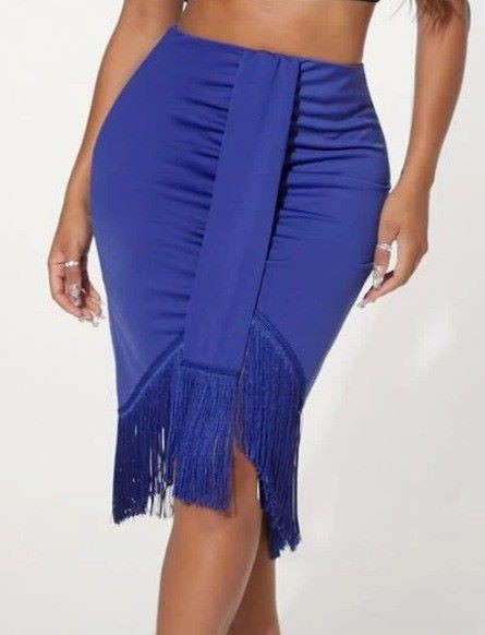 Women's Ruched Draped Fitted Fringe Hem Pencil Skirt