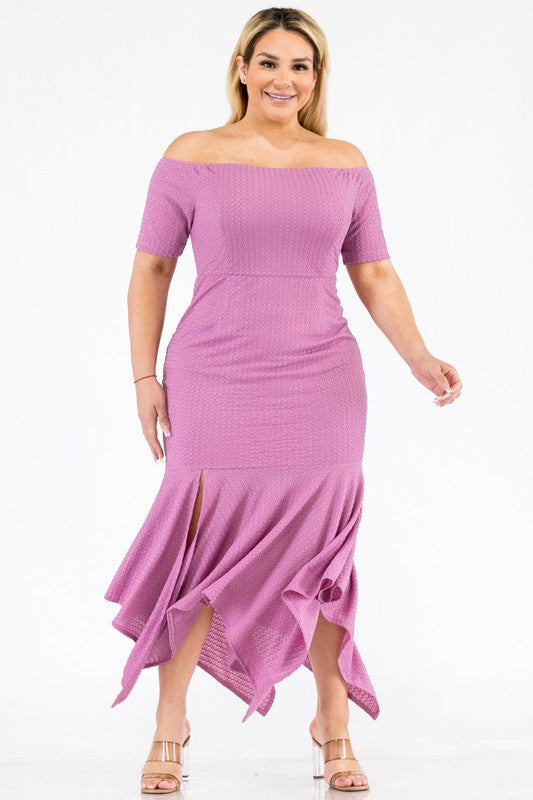 Plus Size Knit Off the Shoulder Shark Bite Hem Dress