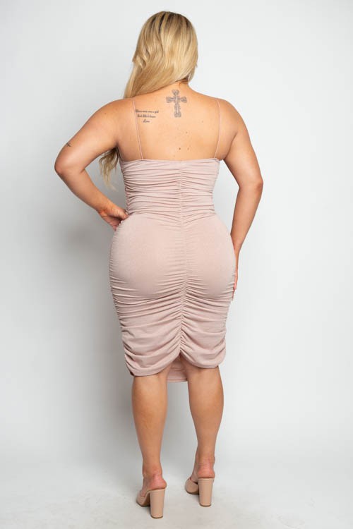 Plus Size Sliver Glitter Spaghetti Strap Midi Ruched Side Dress