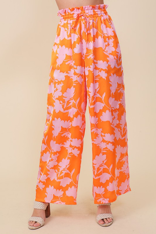 TROPICAL PRINT WIDE PANTS WITH SELF TIE DRAWSTRING