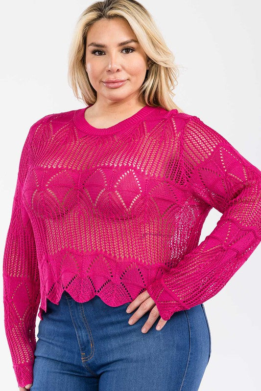 Junior Plus Long Sleeve Crochet Lace Top