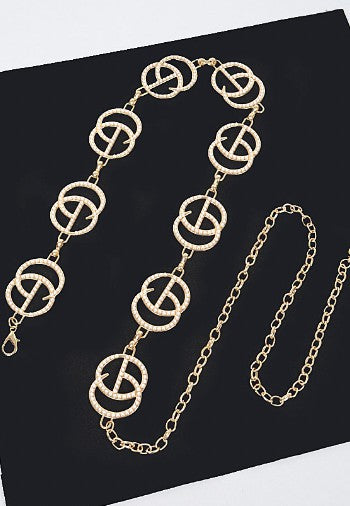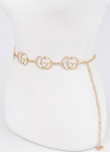 CG Multi Rhinestone Metal Chain Belt