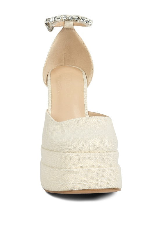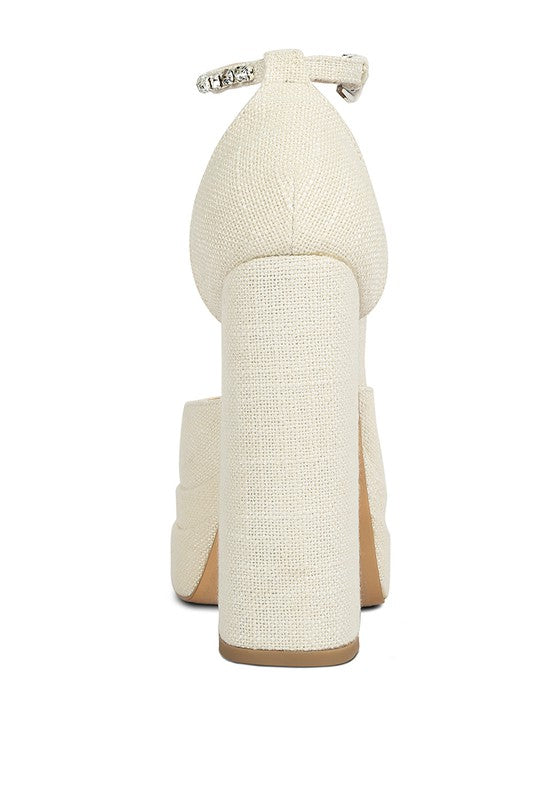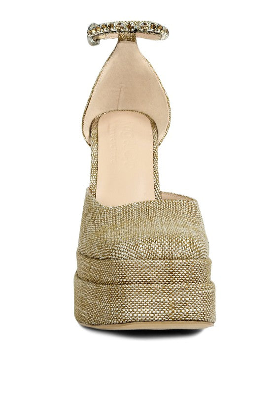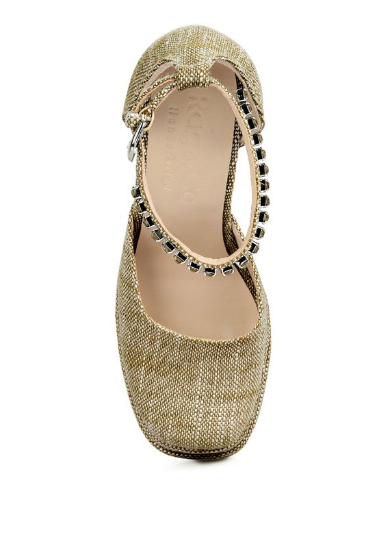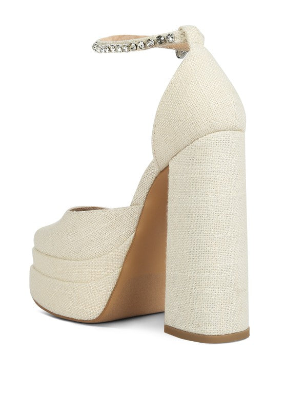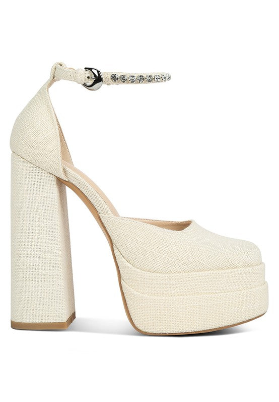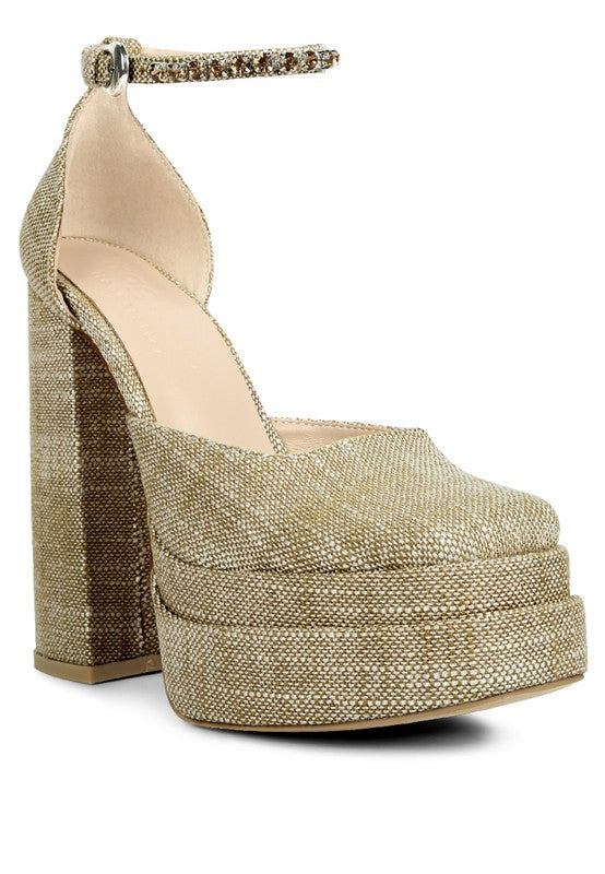 Ready to create a storm? Our Diamante Embellished Ankle Strap High Block Heel Sandals is just the answer. These women sandals are embellished with diamante, giving it a charismatic look. These block heel sandals come with an ankle strap and a pin buckle fastening, making you look elegant. A lightly padded insole is an added advantage. Pair with dress or tights and bewitch the crowd around.