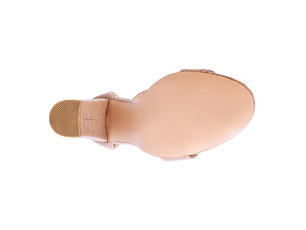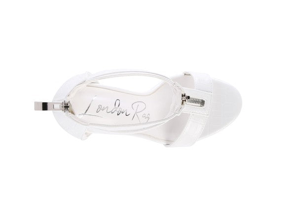 High heeled croc textured sandal with zipper opening on front and back. The stylish sandal looks gorgeous on the feet and has a soft anti-slip insole.