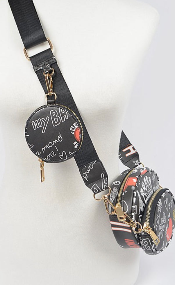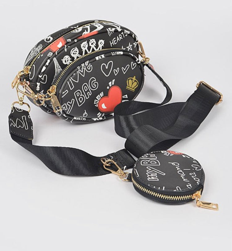 Make a statement with this beautiful graffiti crossbody bag. Crafted with multiple zippers, you'll have plenty of room to store your essentials, while looking stylish. Ideal for any occasion, the bold patterns and colors guarantee to turn heads!