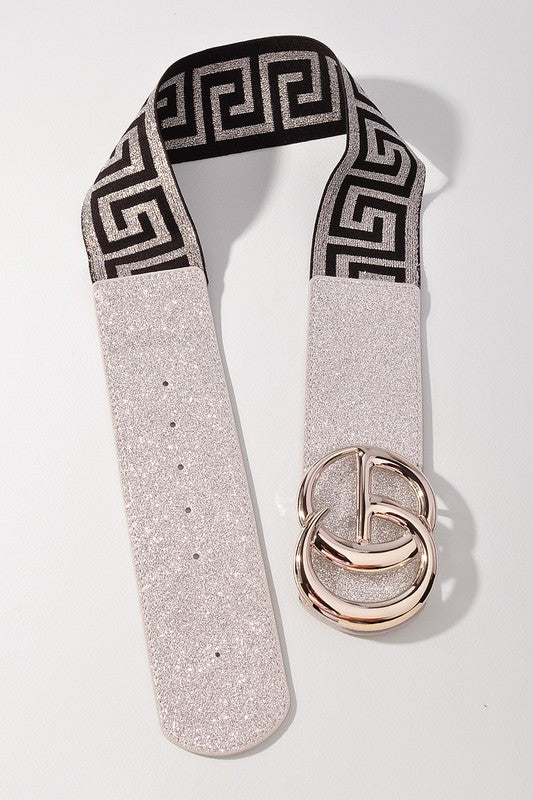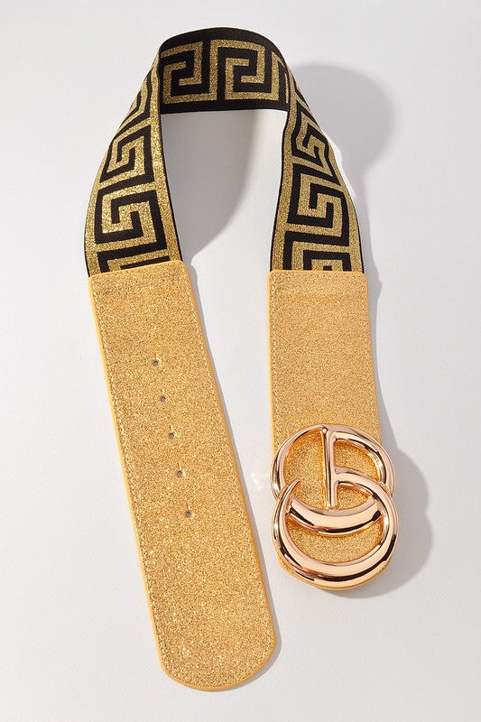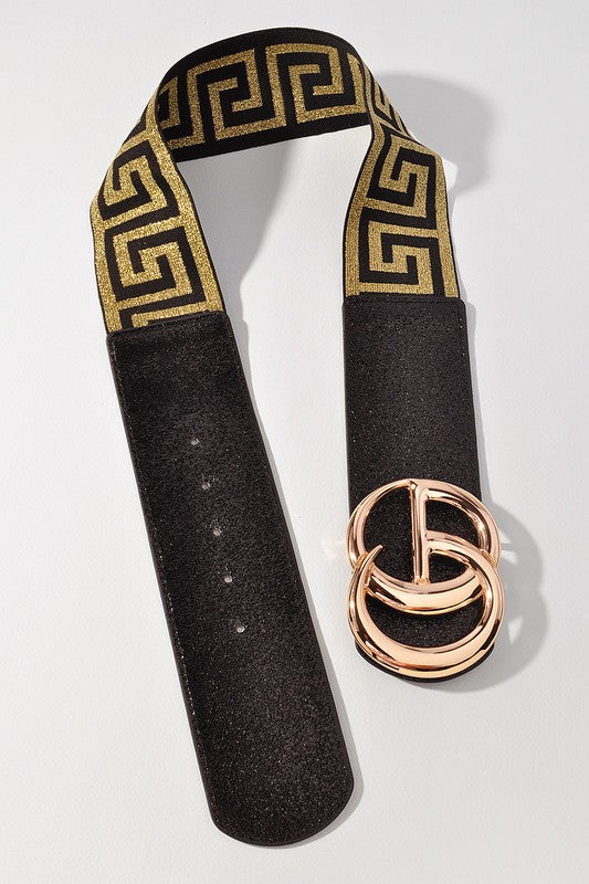 Make a statement with this one-of-a-kind accessory! This elastic belt features a sophisticated Greek key design and a shimmering foil CG buckle that promises to give any look a boost. What's more, it's as comfy as it is stylish—no pinching or binding here!