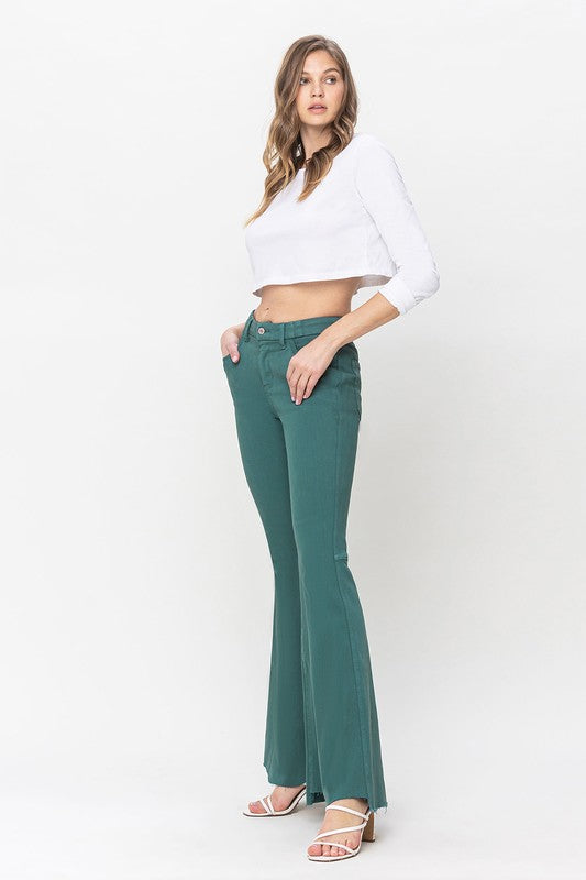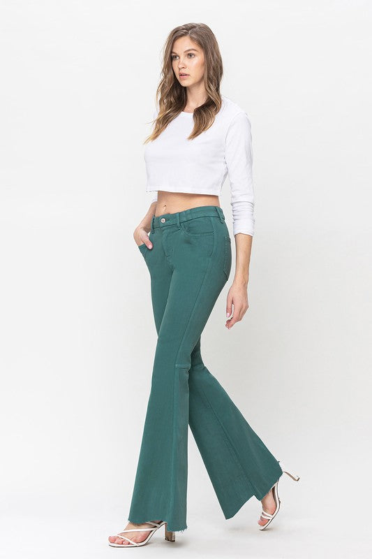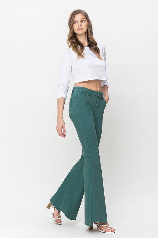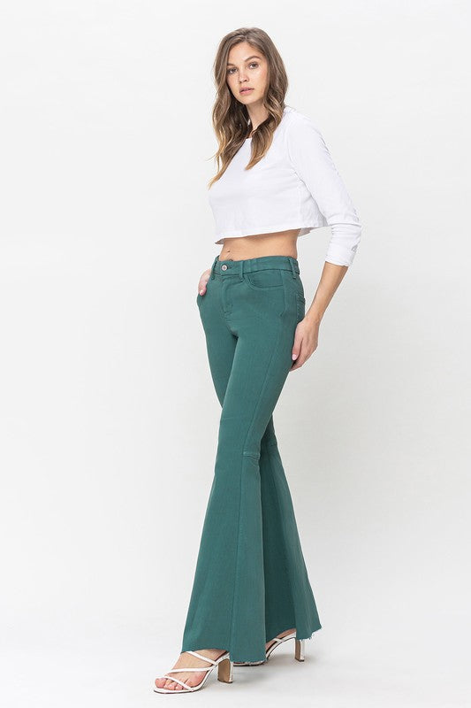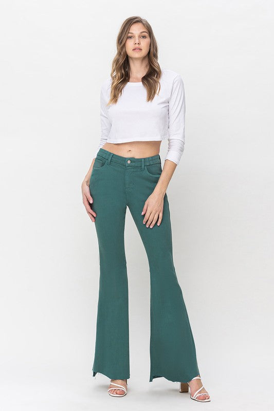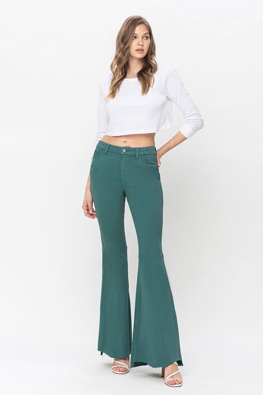 Elevate your style game with our High Rise Super Flare. Crafted from comfortable stretch denim, these jeans feature an ultra-flattering high-rise waist, adding a touch of modern sophistication to this super flare design. With full-length coverage, they offer a timeless and versatile look that's perfect for various occasions.