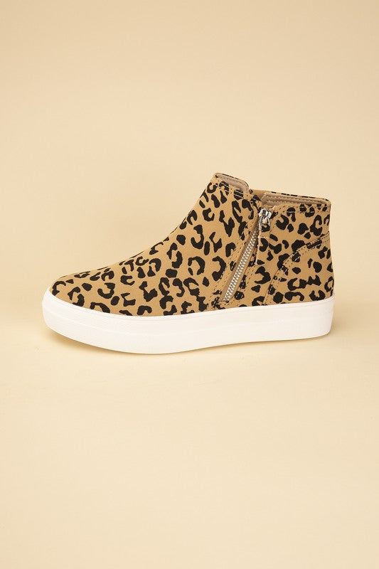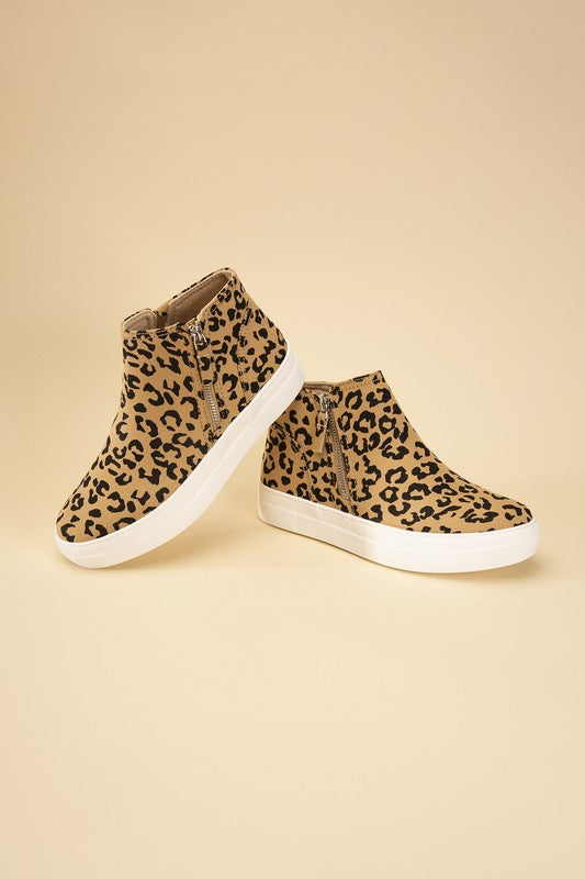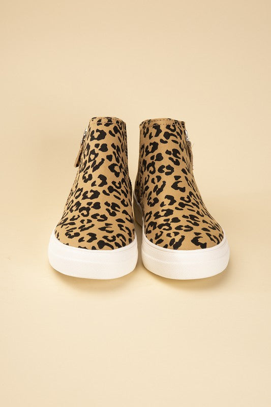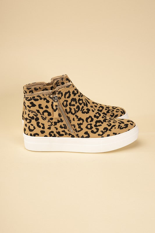 Take a walk on the wild side in these fashionable high top leopard print sneakers! With luxurious leopard print designs, they'll make you stand out wherever you go. Not to mention, you'll be walking in comfort, too. So add some pounce to your kicks - these sneakers are purr-fect!