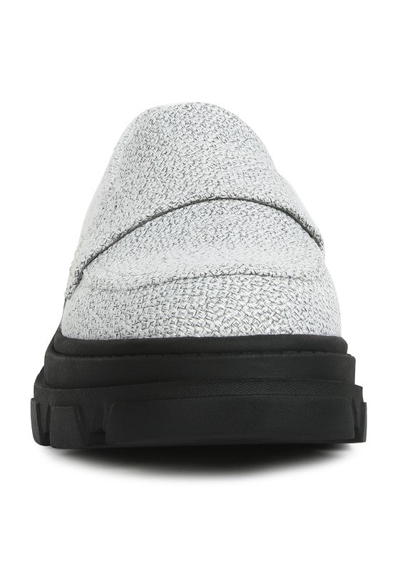 Trendy yet chic, the chunky loafers are a versatile piece and a staple in the wardrobe. Their versatility allows them to be paired with formal as well as casual attire. The comfortable cushion insole is easy on the feet and the slip on style makes them easy to wear.