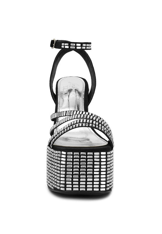Lustrous Mirror Embellished Flare Heel Sandals