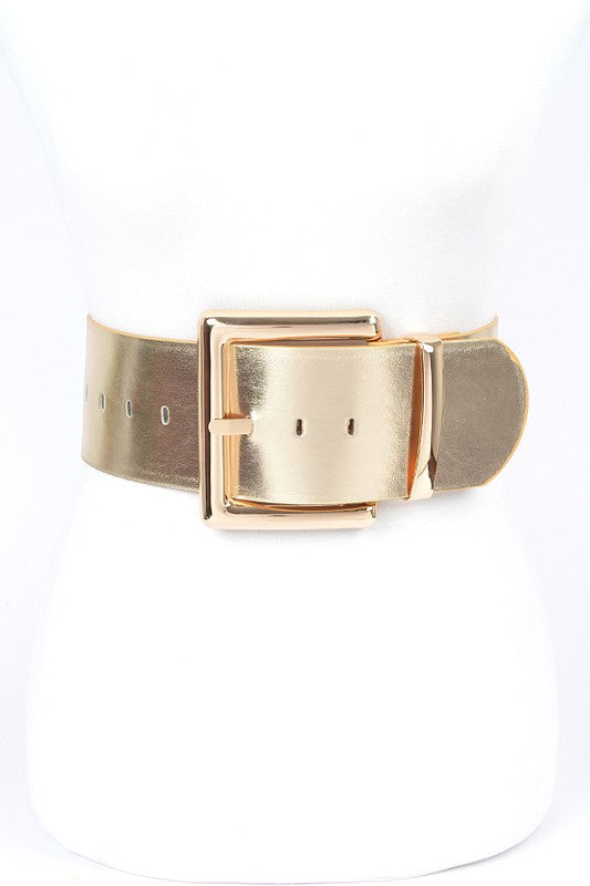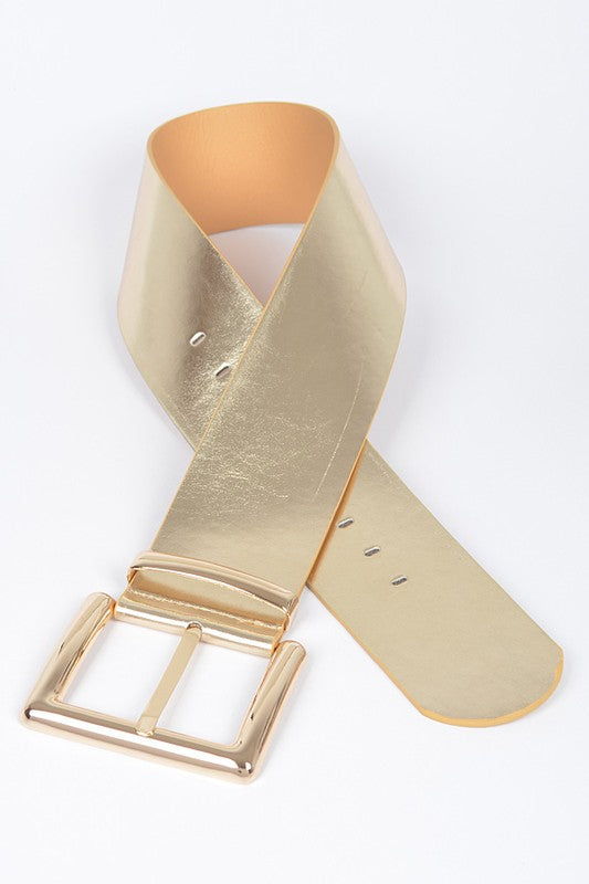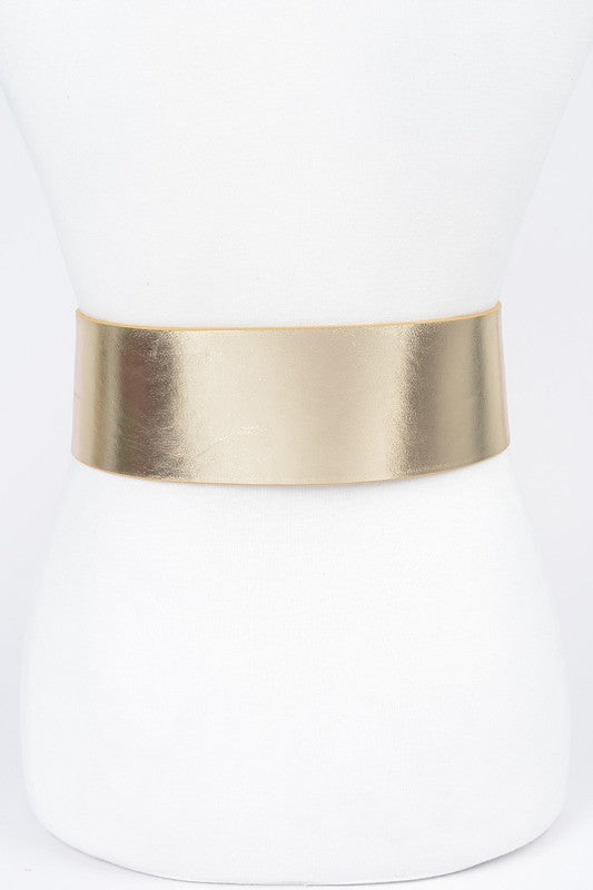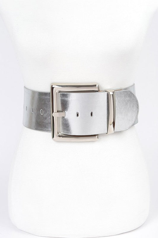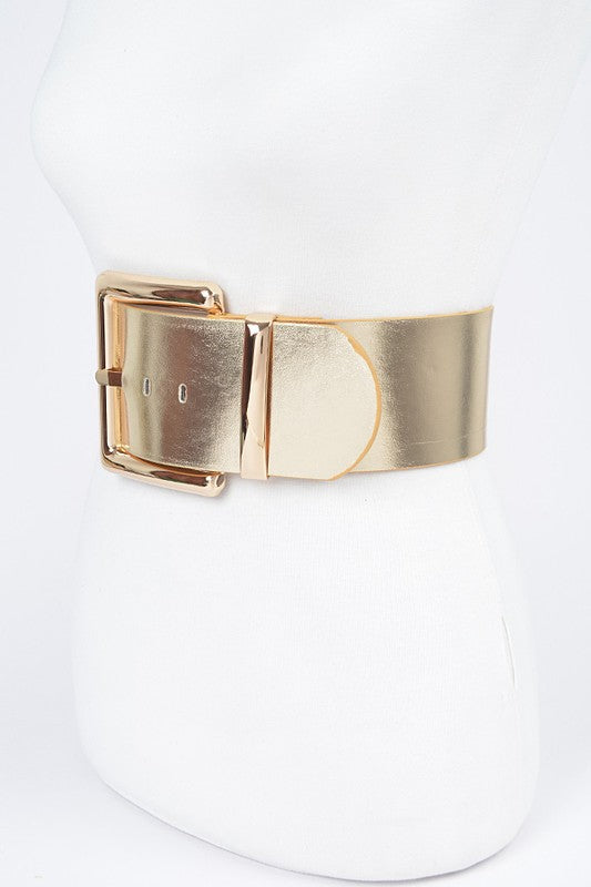 Add a touch of glamour to your outfit with our Metallic Classy Wide Fashion Belt. This stylish and versatile accessory is perfect for cinching your waist, creating a sleek and flattering silhouette. Elevate your style and add a touch of sophistication to any look with our Metallic Classy Wide Fashion Belt.