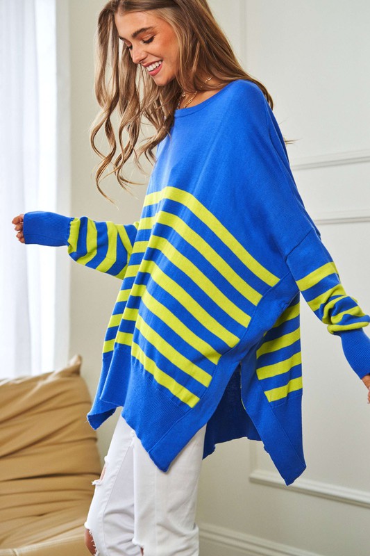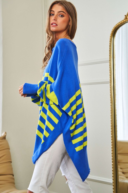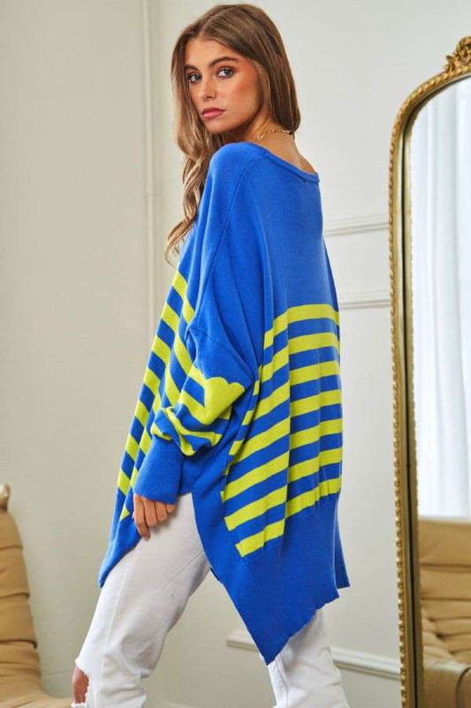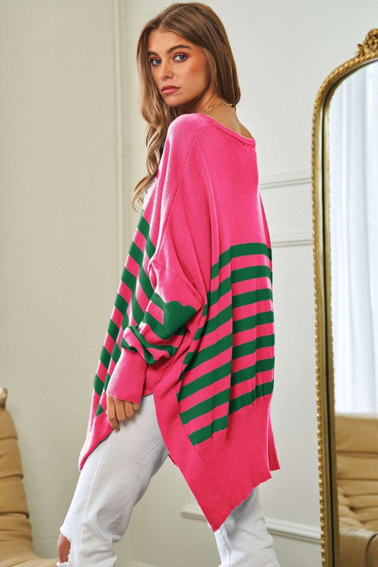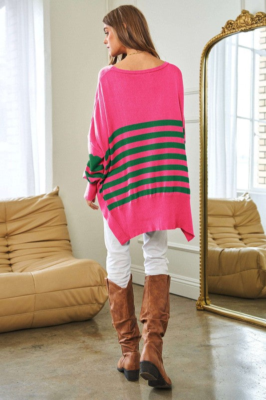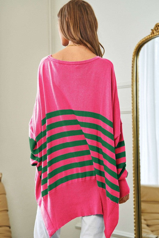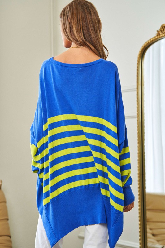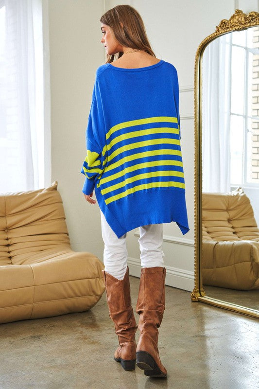 Multi Striped Elbow Patch Loose Fit Sweater Top