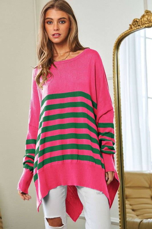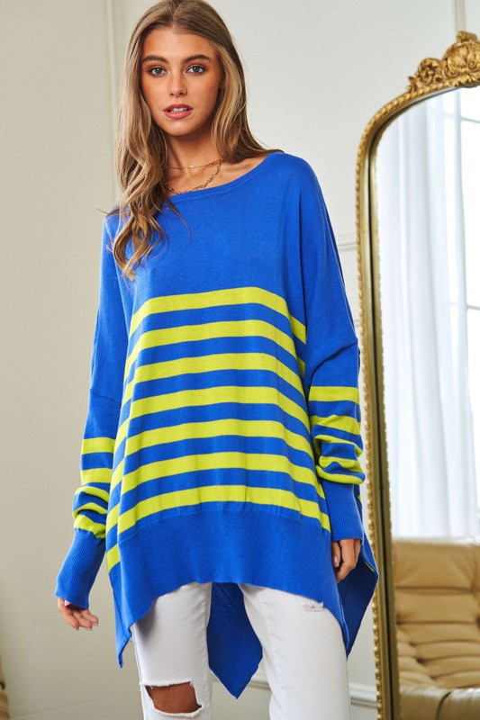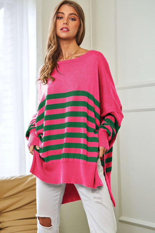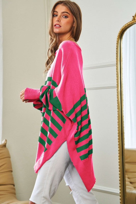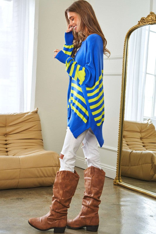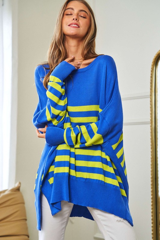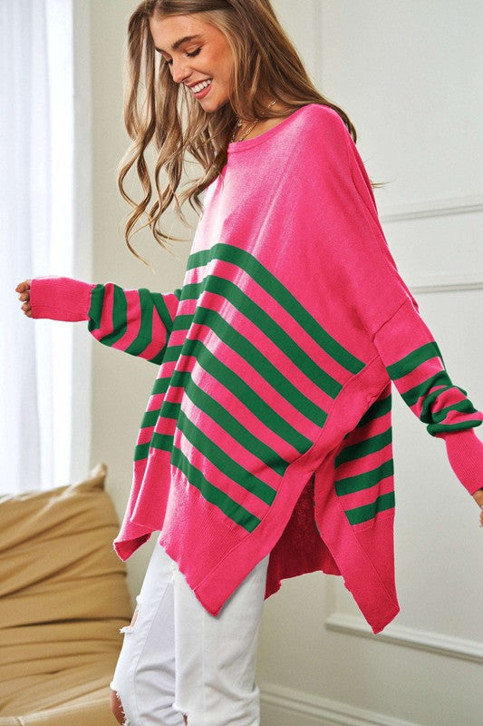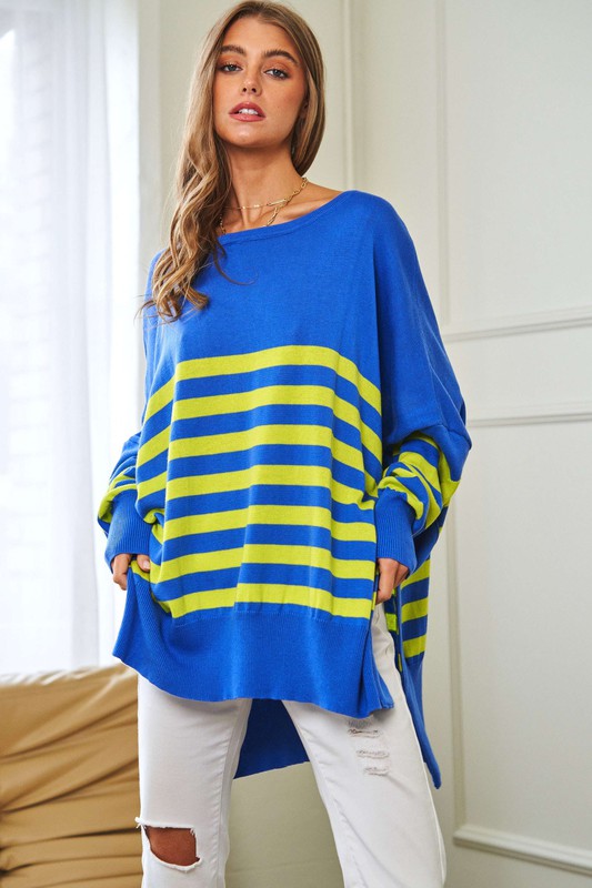 Multi Striped Elbow Patch Loose Fit Sweater Top