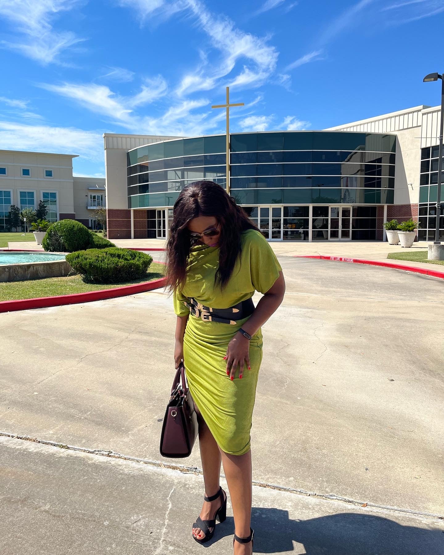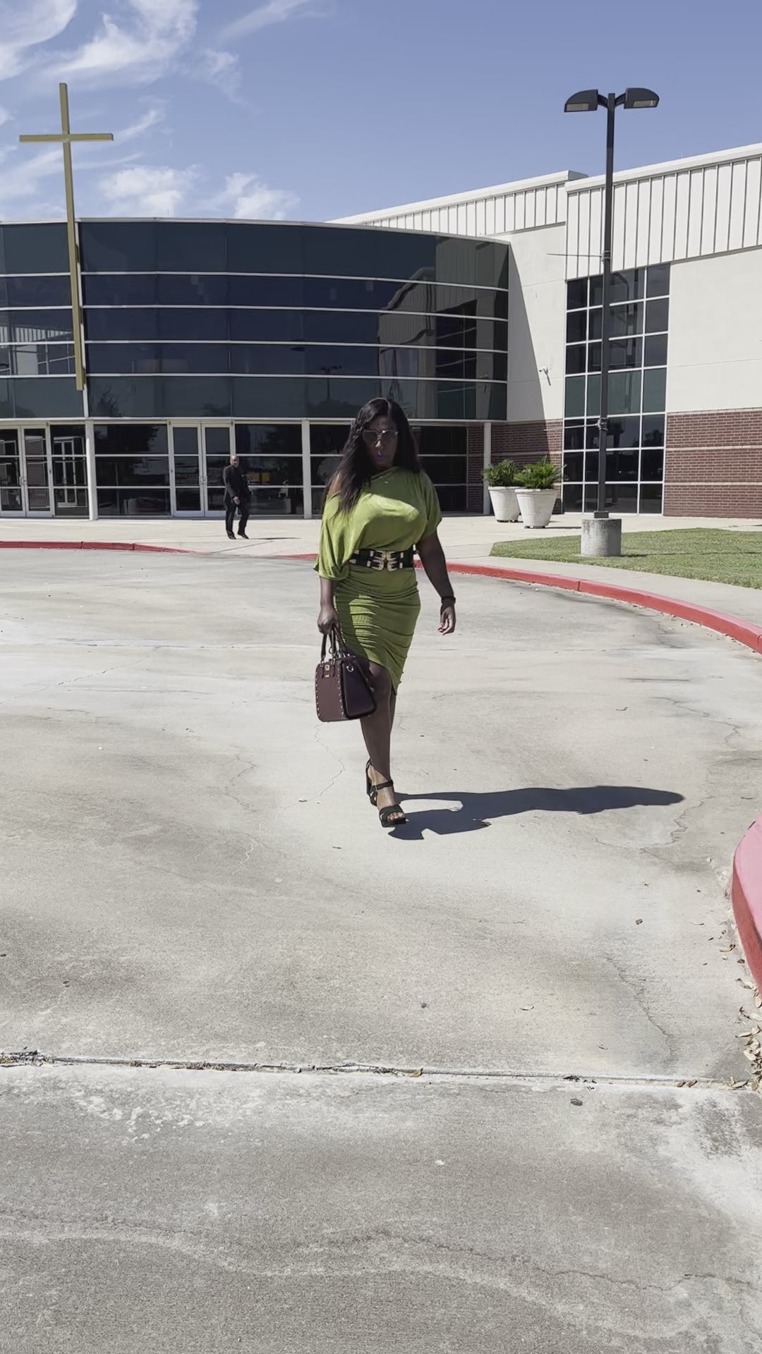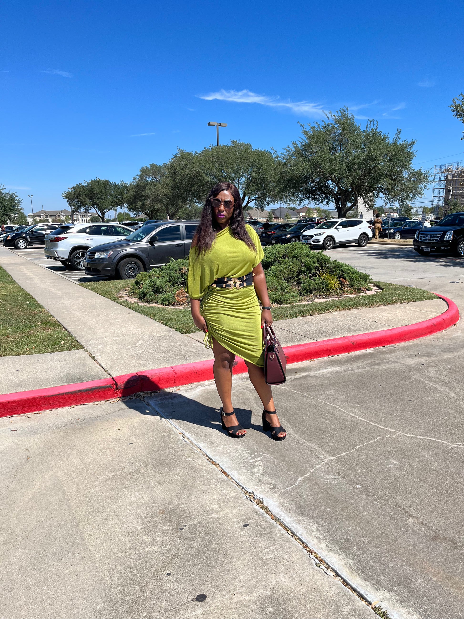 Stretch slinky plus size dress featuring one/off shoulder, three quarter