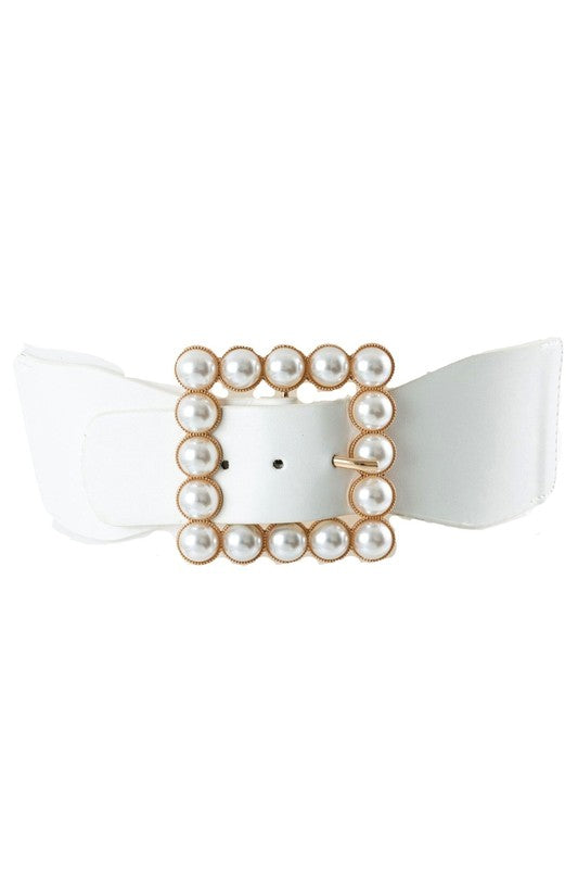 Oversized Pearls Deco Square PU Stretch Belt