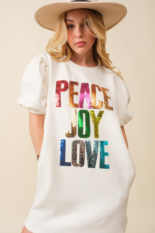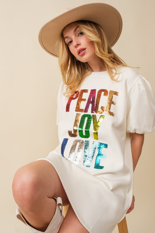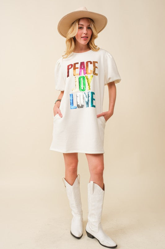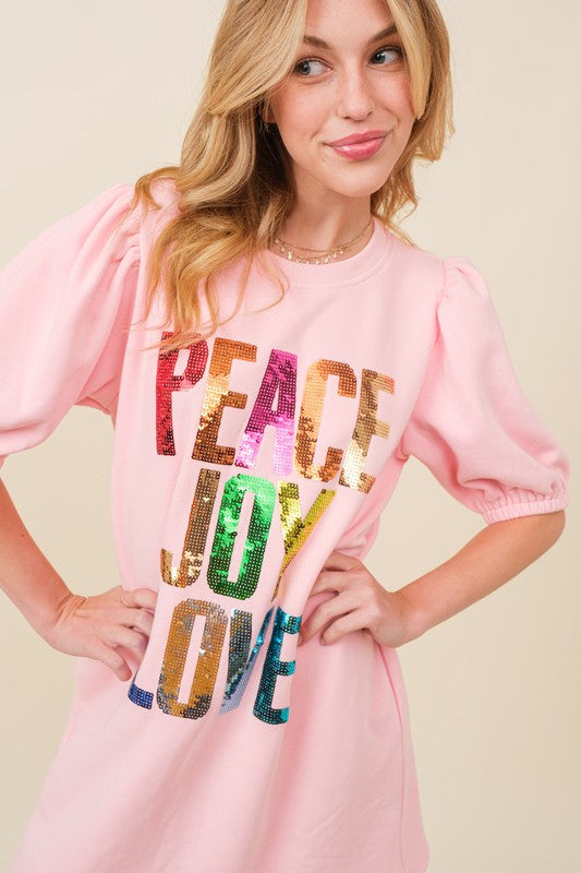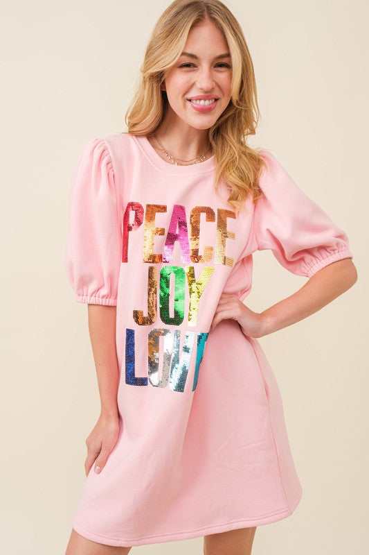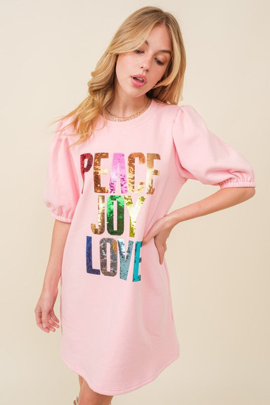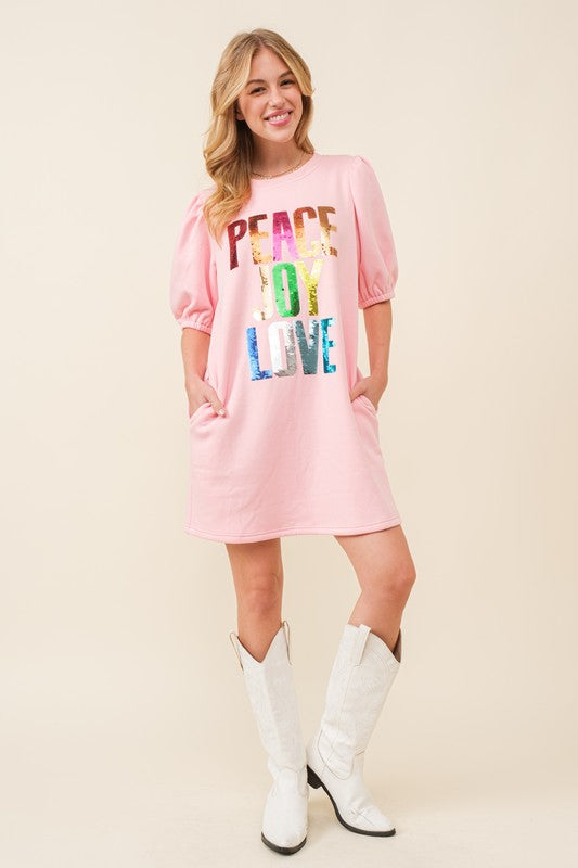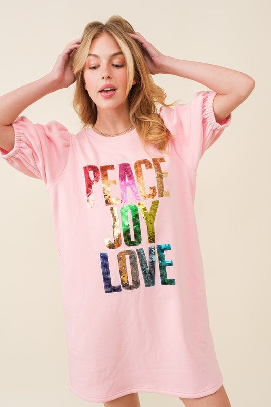Be the life of the party in this Peach Joy Love Sequin Wording Fleece Dress! This oh-so chic, fleece dress comes with an eye-catching sequined phrase that will make you the star of any event. Step out in style and make your wardrobe sparkle!