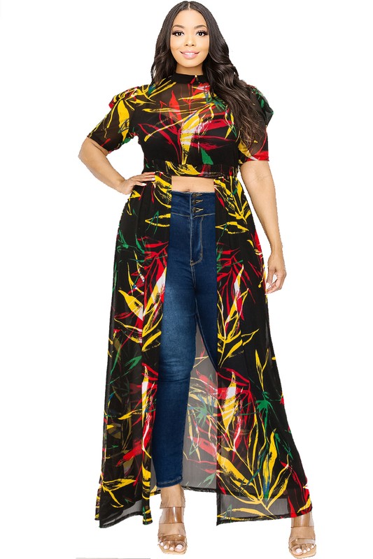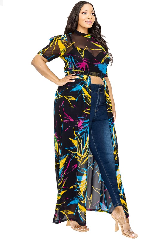 Make a fearless statement in the Plus Size Leaf Mesh Print See-through Maxi Dress. Designed with a bold open top and sheer leaf-patterned mesh, this dress highlights your curves with provocative elegance. Its flowing silhouette and daring transparency create a captivating look that commands attention at any occasion.