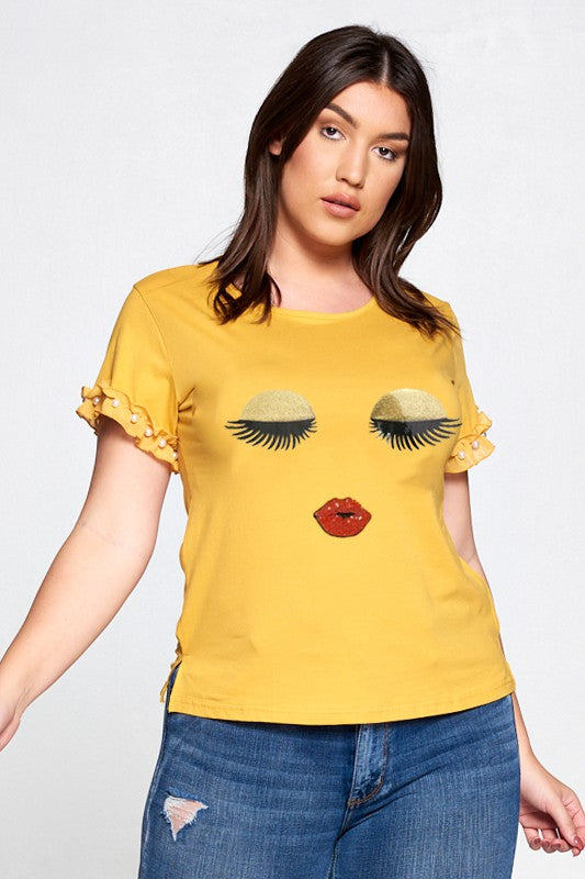 Plus Ruffle Pearl Shirt Sleeve Love Top