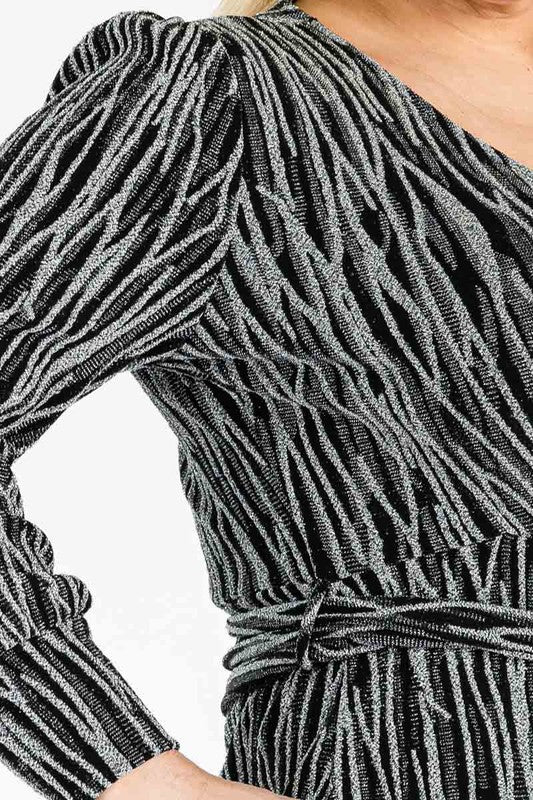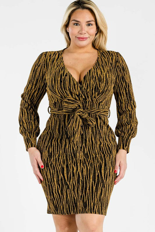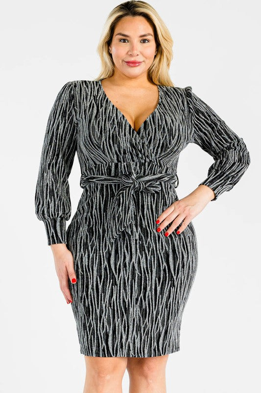 Plus Size Lurex Abstract Print Surplice Tie Waist Midi Dress