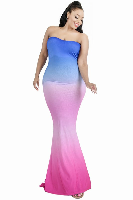 -TUBE MAXI DRESS -GRADIENT PRINT -FLARE HEM -STRETCH