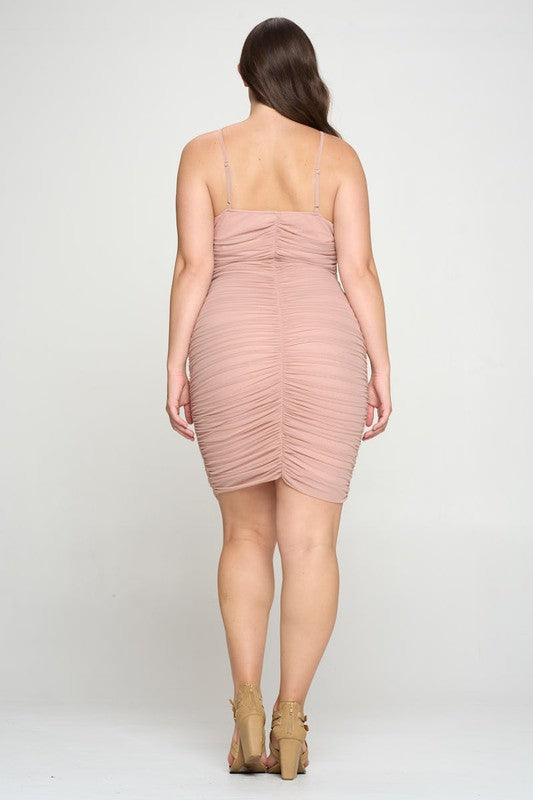 . Adjustable spaghetti strap on shoulder . Ruched . Lined * Power Mesh Model is wearing size 1XL. Height: 5 11" Waist: 34" Bust: 43" Hips: 44"