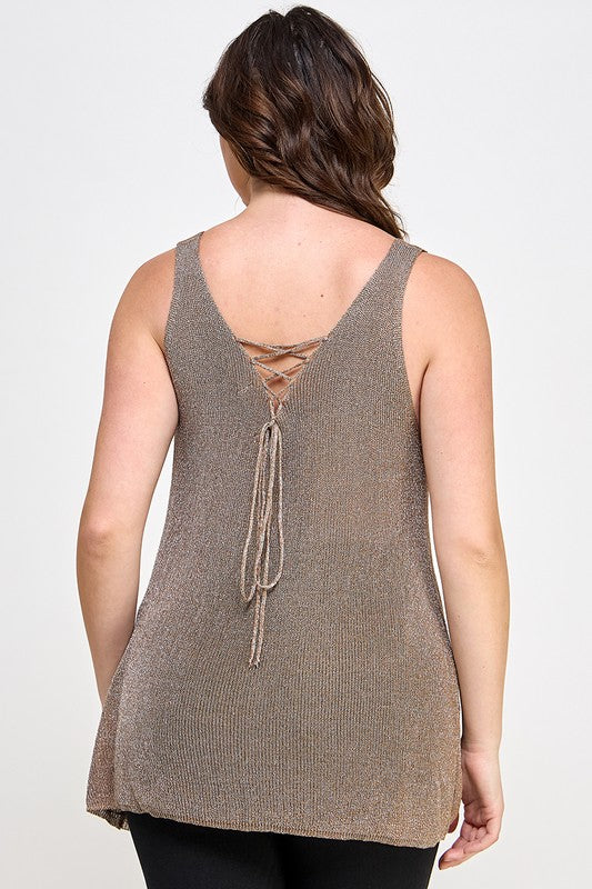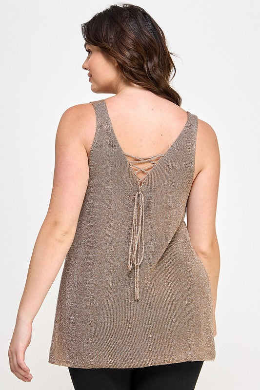 Plus Size Sleeveless Sweater Knit Lurex Tank