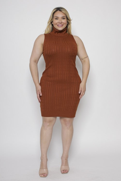 Plus Size Sweater Knit Turtleneck Bodycon Sleeveless Mini Dress