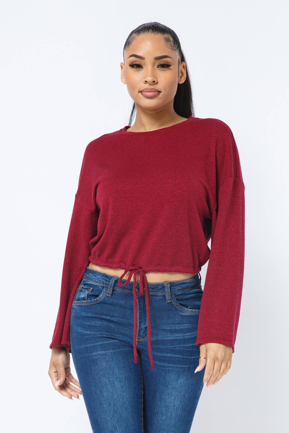 Women's Poly Hacci Drawstring Bell Sleeve Top