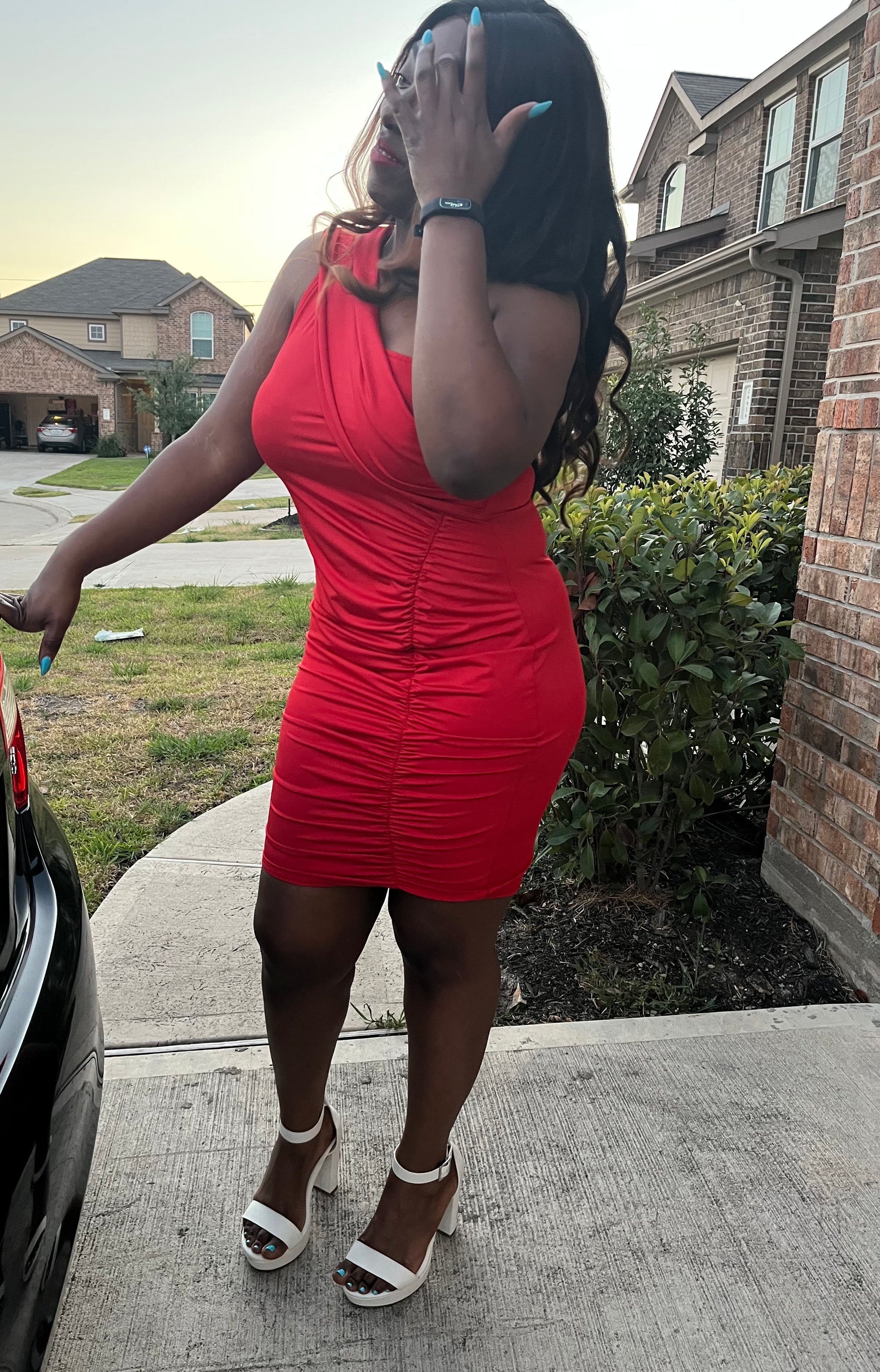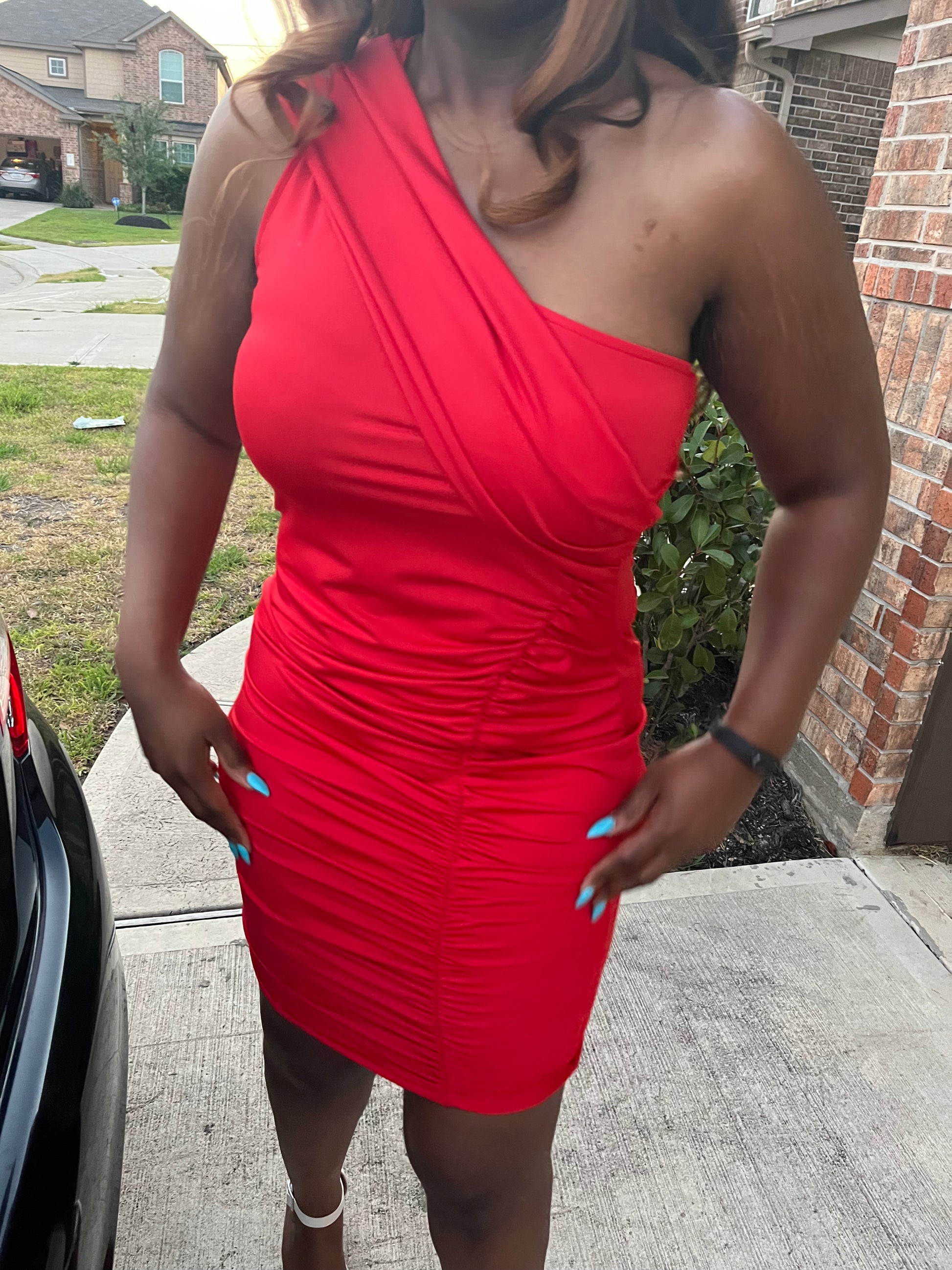 Red Plus Size One Shoulder Ruched Dress This dress is crafted with