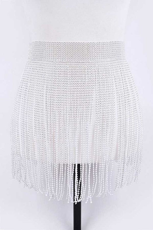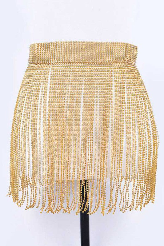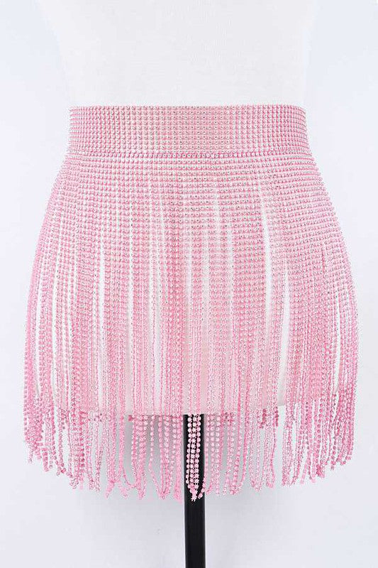 Rhinestone Slash Fringe Belt