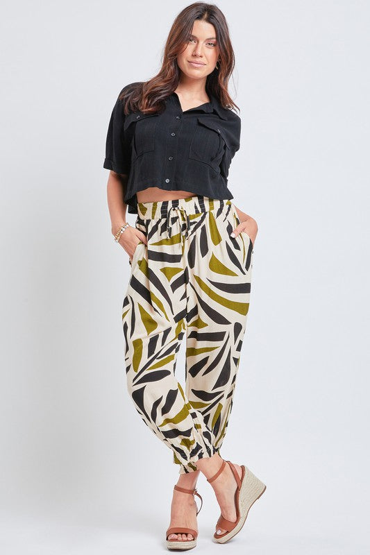 Smocked Waist Rise Tiny Ruffle Detail Jogger